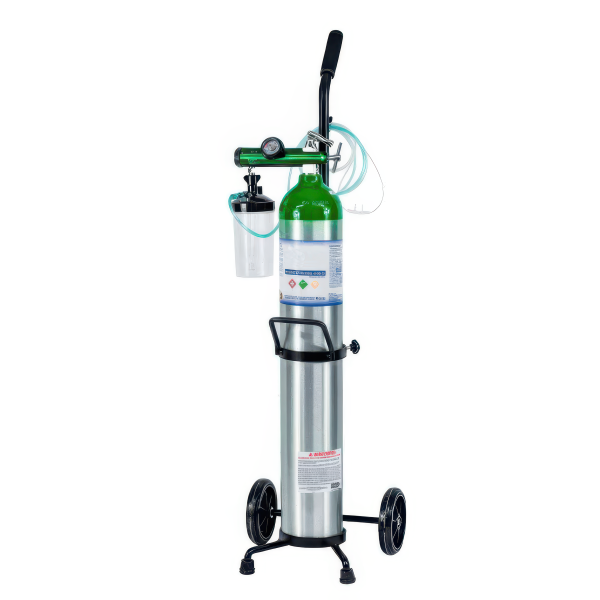 Cuenta con carro, regulador cga870 , cánula nasal y borboteador